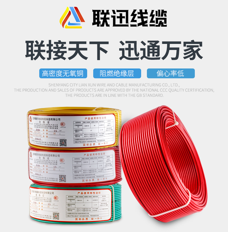 沈陽(yáng)聯(lián)迅線纜制造有限公司生產(chǎn)及經(jīng)營(yíng):交聯(lián)聚乙烯絕緣電力電纜、絕緣耐火電纜、架空絕緣電纜、阻燃耐火電力電纜、礦物質(zhì)絕緣電纜、低煙無(wú)鹵電力電纜、控制電纜、銅包鋁電纜、屏蔽線纜、橡套電纜、預(yù)分支電纜、膠套電纜及家裝用線等。